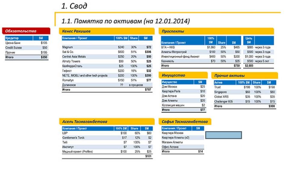 В распоряжении редакции оказался документ, из которого следует, что два года назад молодой казахский бизнесмен Кенес Ракишев уже «стоил» 1,687 миллиарда долларов. Это в два раза больше, чем он «весит» до сих пор по официальной версии «Форбс» -718 миллионов долларов. Посмотрим, что же спрятано в его копилке?