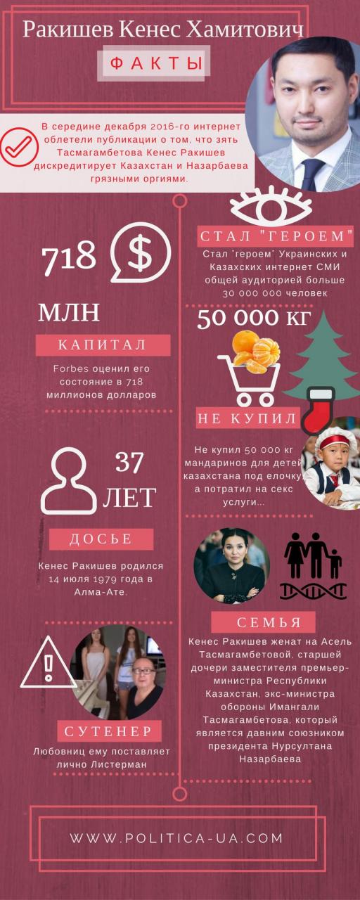 Что касается Кенеса Ракишева, то он сейчас тратит деньги еще вычурнее. В 2016 году СМИ облетела информация, что Кенес Ракишев вовлечен в несколько секс-скандалов. В числе его любовниц – несовершеннолетние. На сайте realkazz.wordpress.com были опубликованы фрагменты переписки казахского магната с одиозным российским сводником Петром Листерманом. Сразу отметим, что новость в интернете пролежала не долго, и была удалена – как и многие информационные материалы о скандальной жизни Ракишева. Тем не менее, подробности указанной переписки все же сохранились. Следуя им, Листерман доставил Кенесу Ракишеву в сексуальное рабство 15-летнюю Елену Селезневу. Также, он отправлял неугомонному младоолигарху моделей постарше – это называлось «прислать переводчиц».